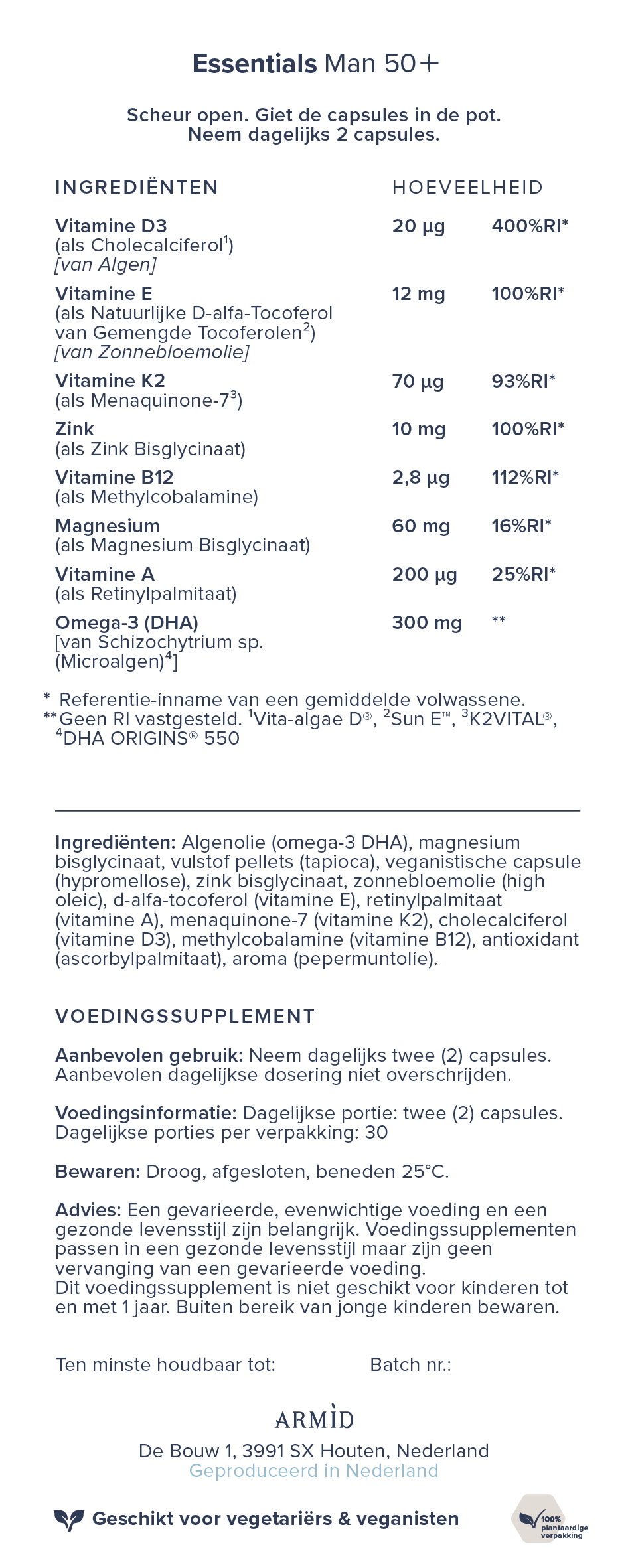 ARMID is speciaal ontwikkeld voor mannen vanaf 50 jaar, voorzien van alle essentiële nutriënten perfect afgestemd op jouw behoefte als 50+ man.