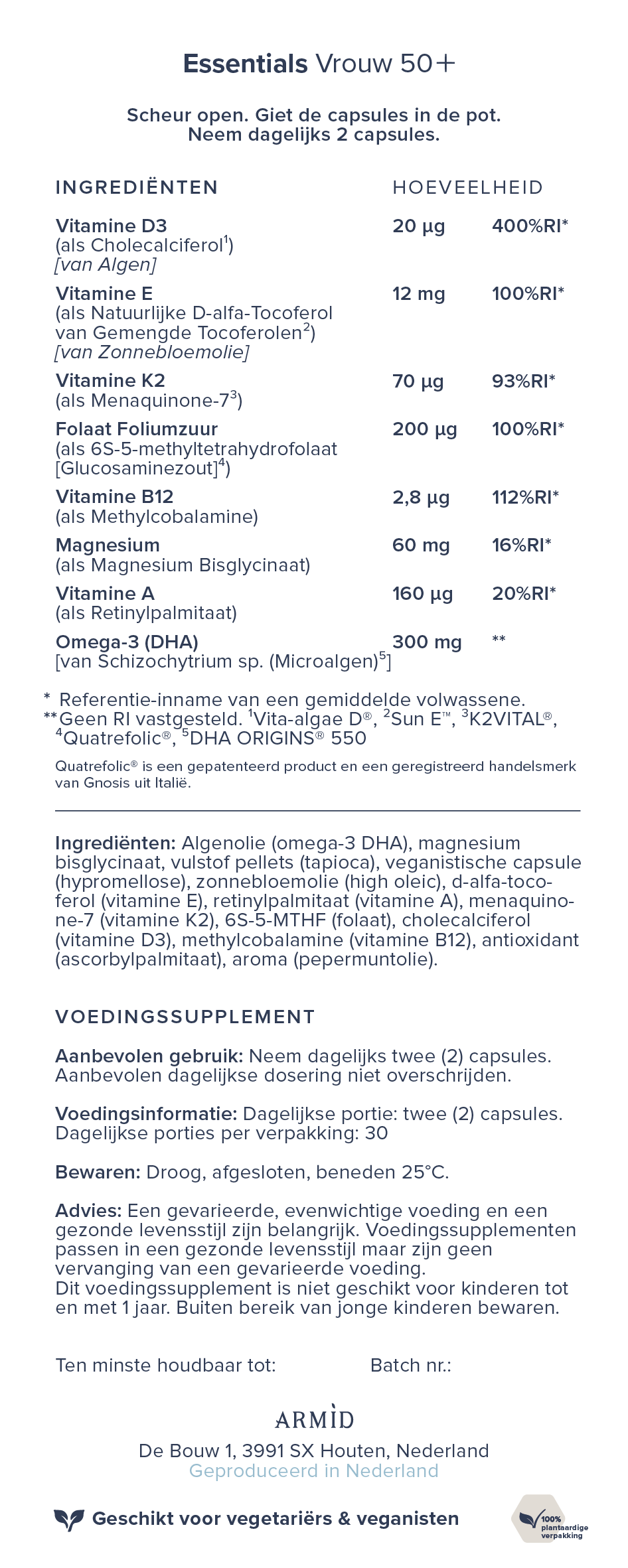 ARMID is speciaal ontwikkeld voor vrouwen vanaf 50 jaar, voorzien van alle essentiële nutriënten perfect afgestemd op jouw behoefte als 50+ vrouw.